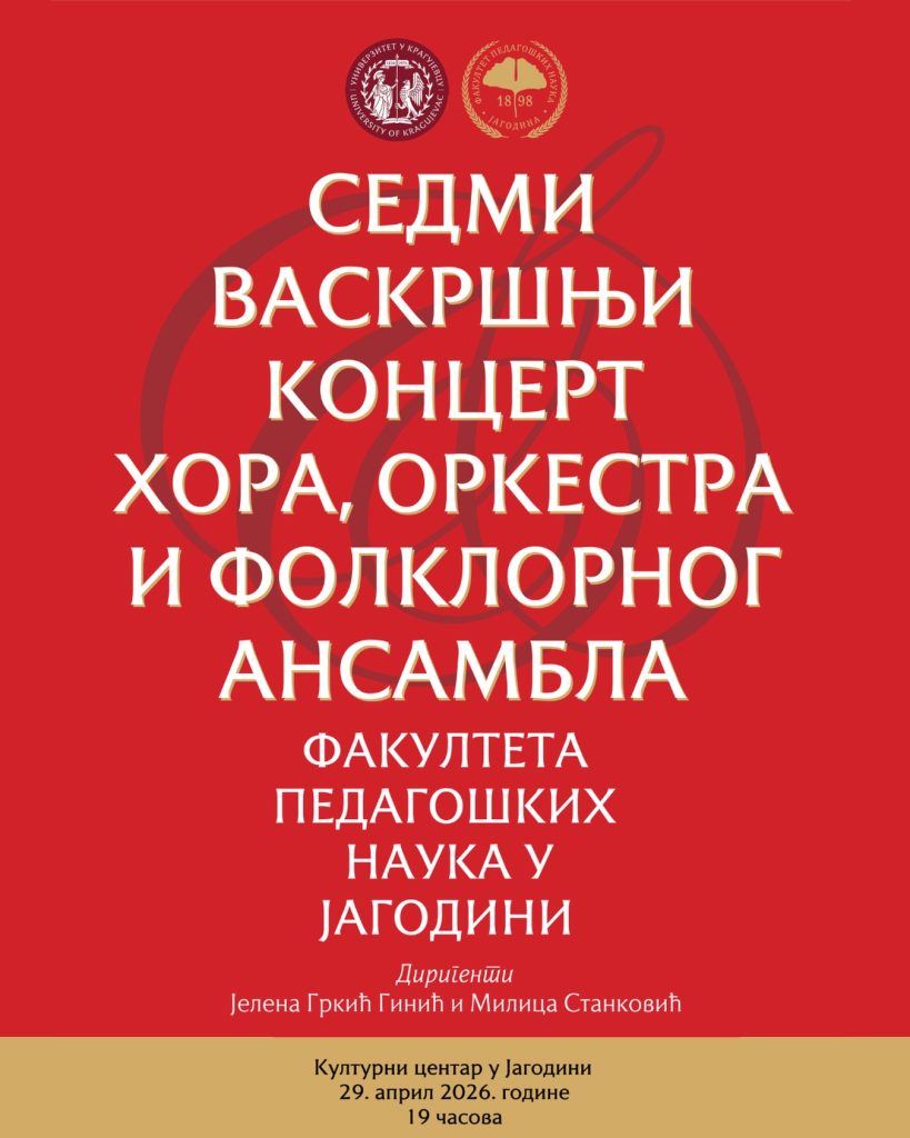 Fakultet pedagoških nauka u Jagodini sa ponosom vas poziva na SEDMI VASKRŠNjI KONCERT HORA, ORKESTRA I FOLKLORNOG ANSAMBLA
