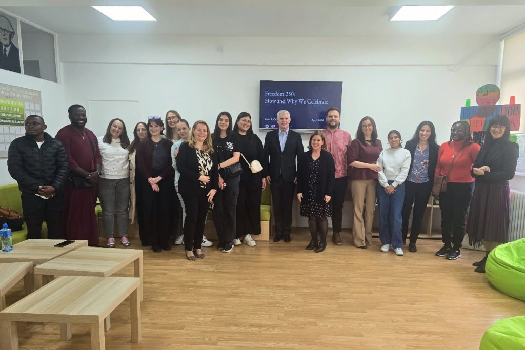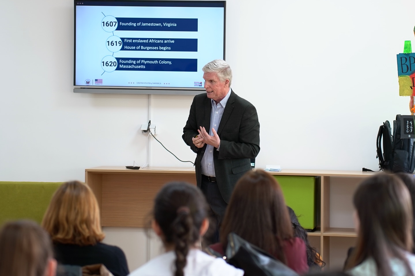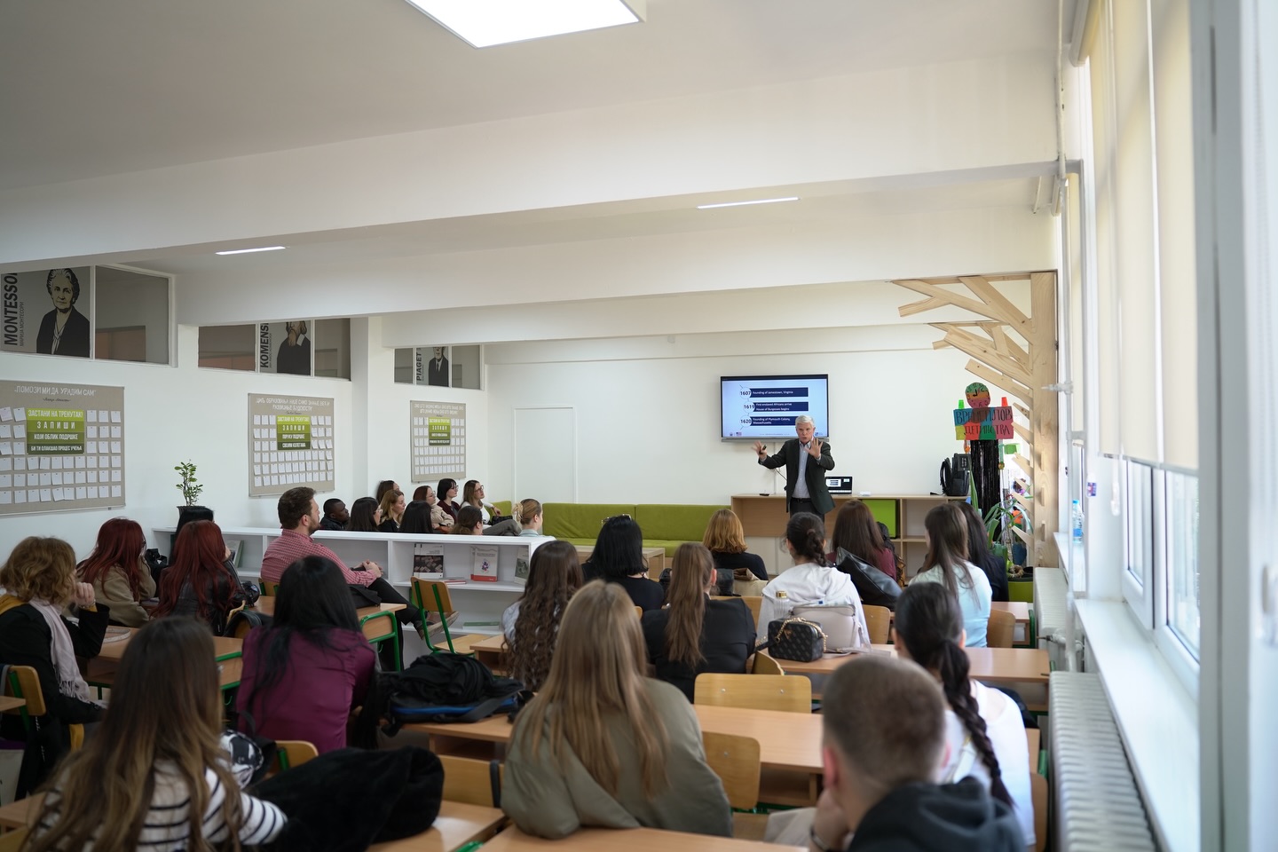 Together with representatives of the U.S. Embassy, Dr. Colleary visited our faculty and delivered an inspiring lecture and workshop for students and university staff. As an expert in social studies education, critical thinking, digital literacy, and effective teaching practices, his session focused on innovative approaches to teaching, integrating historical and cultural content into language learning, and fostering critical thinking in the classroom.